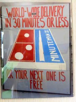 | Under the Strategic Arms Reduction Treaty signed in 1991 by the US and USSR, both countries began to reduce their stockpiles of nuclear weapons. As Minuteman missiles were de-activated, the military and national park service worked to preserve a representative missile silo and a launch site as part of our history. The building is quite small. In fact, with only 10 visitors, it was overcrowded. We watched a short film, looked at the few exhibits available and were told the tours for the next few days were already booked. |