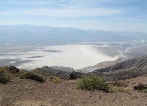 | When seen from Dante's View nearly a mile above it, Badwater Basin in the valley floor below looks expansive and breathtaking. The temperature difference was about 50°F and a welcome respite. |