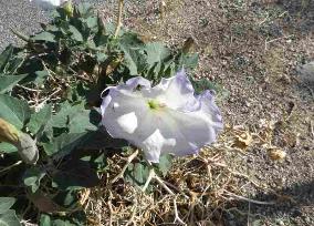 | Despite the extreme temperatures and arid conditions, beautiful things thrive like the desert thorn apple datura above. Beautiful, but a deadly member of the nightshade family. |