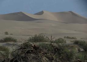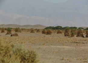 | Clumps of arrowweed at a distance in the Devil's Cornfield really do resemble corn shocks tied up for harvesting. |