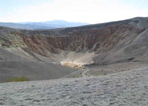 | The Ubehebe Crater was formed just a few thousand years ago by a massive volcanic explosion which left this 600 foot deep crater. |