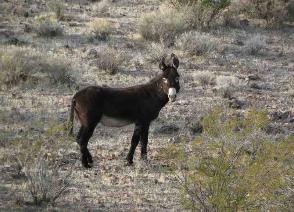 | Iin the early 1800's, a small number of burros escaped or were turned loose by prospectors. The burros adapted to the desert conditions quickly and their numbers soared to over 3000... not good for the native bighorn sheep who compete in the same scant grazing area. Parks Service has reduced the burro population significantly. |